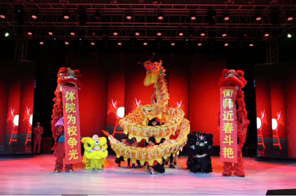 晚会开场节目为《舞龙舞狮》,巨龙在台上飞舞,狮头在场上活灵活现,龙狮齐舞,喜庆吉祥,让同学们为之赞叹。不失为一场视觉盛宴;经过短暂的暖场秀后,四位主持人宣布晚会正式开始!接下来,由江经理为晚会进行新年致辞,一番慷慨激昂的讲话彻底点燃了场上同学们的热情,掌声欢呼声响彻了整个晚会现场。小品《新四大才子》以风趣幽默的动作、诙谐调侃的语言令在场的观众捧腹不止,晚会气氛愈加高涨;随后晚会迎来了本次的神秘嘉宾,由辅导员彭伟家老师带来的一首《十七岁》,彻底将场上气氛推上了高潮,缓缓动听的歌声伴随着大荧幕上播放公司这些年的员工青春画面,让同学们产生了共鸣,怀揣着这份感动,场下的同学们爆发出了热烈的掌声与欢呼声;《WE》、《燃》、《舞蹈串烧》等系列舞蹈节目的出现,在场上刮起了一阵潮流现代风,欢笑声,欢呼声占领了整个会场;晚会期间,还穿插了丰富多样的有奖互动环节,同学们都踊跃参加,本着友谊第一比赛第二的精神相互竞争相互合作。最后,本次元旦晚会在19级体教四六班的大合唱《仰望星空》&《朋友》中圆满落下帷幕。