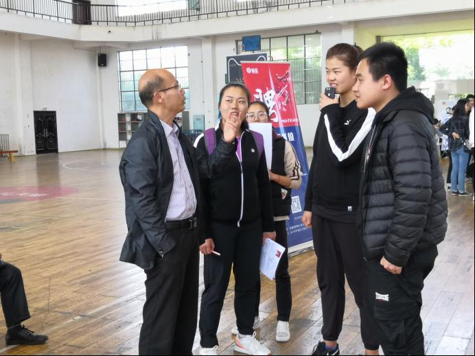 31日下午,球盟会在篮球馆也举行了体育类行业性人才专场招聘会,由13家用人单位光临专场招聘会,体育公司2019届毕业生约150人参加。公司领导对此次招聘会高度重视和支持,公司党总支周仲景书记、陈铖副书记亲临会场指挥并与用人单位和毕业生交流,公司三位辅导员都在场组织毕业生有序应聘,招聘人员详细解答公司毕业生提出的关于薪酬待遇、晋升空间、就业地点等各方面的问题,并且对意向强烈者进行深入了解沟通。此外,部分用人单位进行了现场面试环节,提供了进行双方交流的机会,更能测评员工的知识、能力、经验等方面的素质。