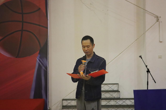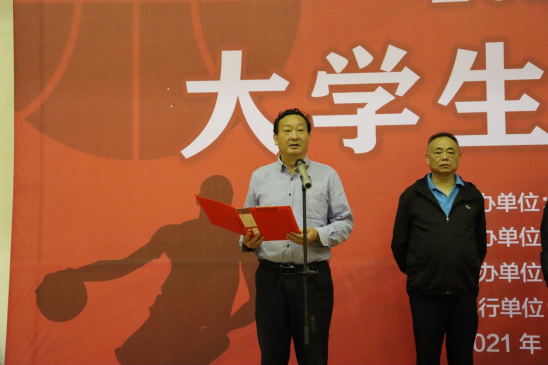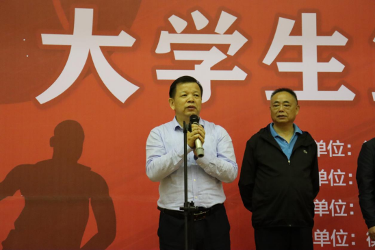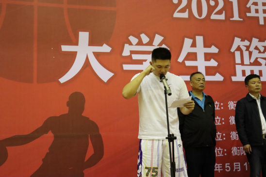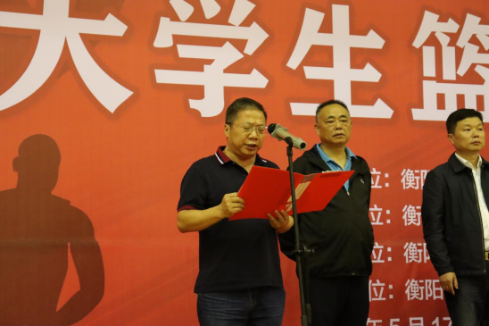 图为衡阳市人民政府副市长龚学余教授宣布本次篮球赛开幕