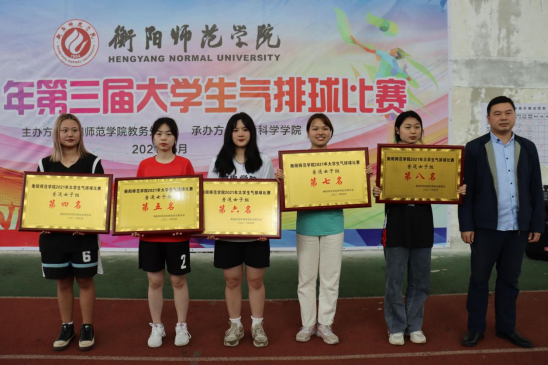 谢明正副经理为普通女子组获得4——8名的代表队颁奖