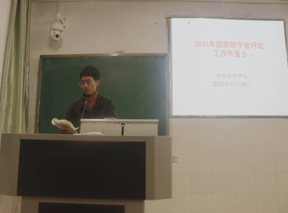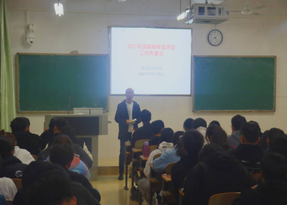 2021年11月10日晚7:30,球盟会在数学楼406教室举行2021年国家助学金评定工作布置会,党总支副书记陈铖,辅导员郭丽老师、戴庆老师及2018级到2021级所有班长和部分员工代表参加了此次会议,此次会议由郭丽老师主持。
