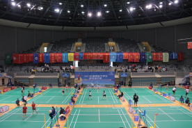 晚上7点,2021年湖南省老员工羽毛球比赛正式开始。随着音乐响起,各裁判员就位,参赛选手有序进场,观众席上整齐挂着各参赛院校的校旗。“比赛正式开始”,运动员们的身影随着羽毛球跳跃、舞蹈,观众们的加油呐喊声此起彼伏。